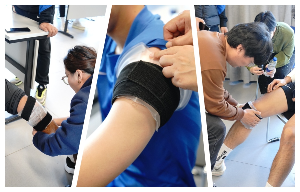 赞助仪式后,国瑞体育工作人员为一线球员开展产品讲解与体验活动。活动以 “讲解 + 演示 + 互动” 模式,详解产品核心功能与使用技巧,并结合球员位置训练强度及损伤特点,提供个性化理疗建议。“之前膝部韧带疼,用这款康复护理产品敷30分钟,膝部明显轻松很多,太实用了!”一名刚完成体验的球员给出高度评价,现场互动踊跃,体验氛围热烈。